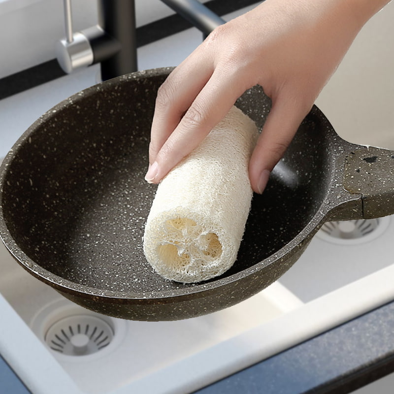 Ang mala-honeycomb na fibrous na istraktura sa loob ng loofah sponge ay maaaring malakas na sumipsip ng langis. Kapag nalantad sa tubig, ang mga hibla ay lumalawak upang bumuo ng hindi mabilang na maliliit na pores, na maaaring mag-encapsulate at magtanggal ng mantsa ng langis. Hindi na kailangang umasa sa detergent.