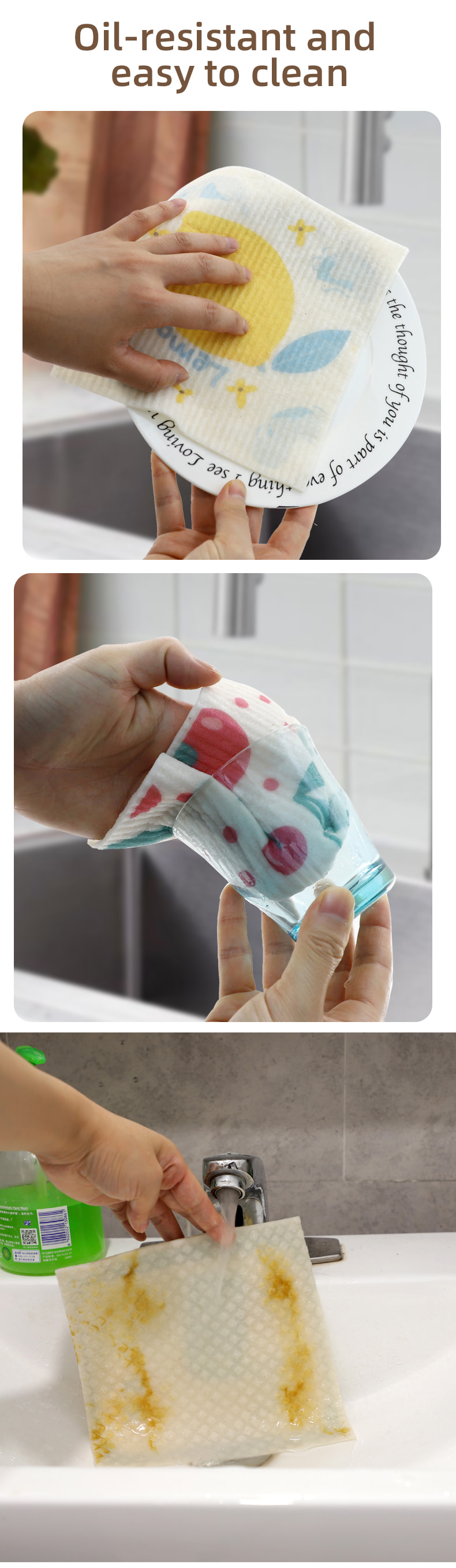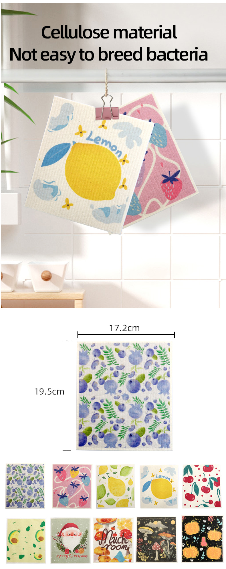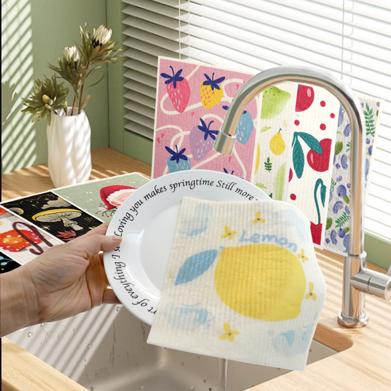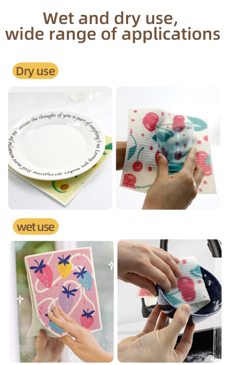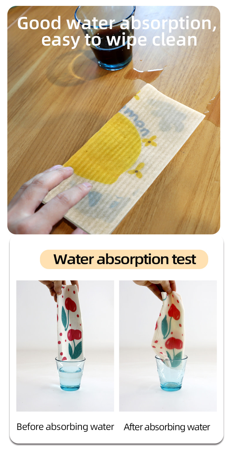 Natural na cellulose sponge cloth, magandang lambot, mahusay na pagsipsip ng tubig, madaling linisin, environment friendly at degradable, matibay, tuyo at basa, hindi natatakot sa langis